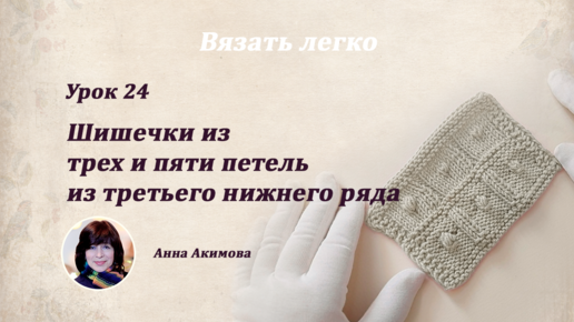 Далее: Урок 25: Шишечки спицами:"зерно". Объемные узоры спицами.