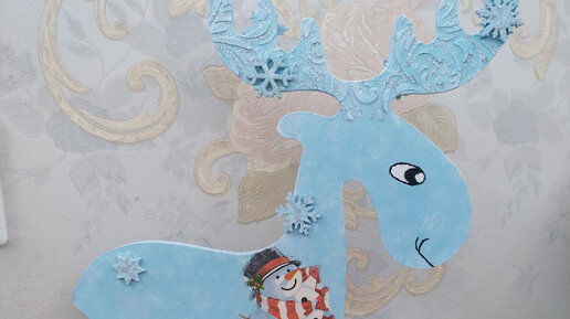 Деревянный декор для дома - лось в лесу, в технике декупаж