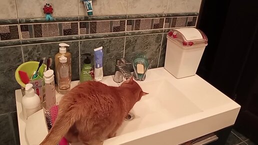 Кошка пьёт воды из под крана, а не из миски, почему? Мой рыбный день.