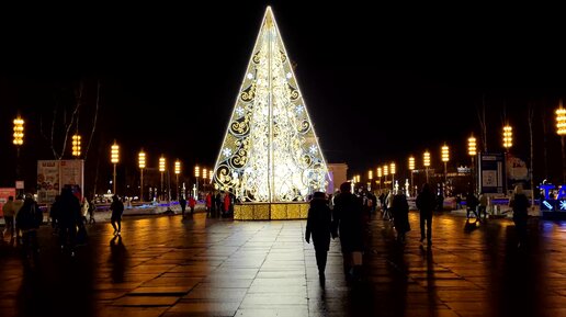 Новогоднее ВДНХ. По дороге от метро к центральному павильону. Гостиница Космос, Солнце Москвы, музей космонавтики, елка, центральная аллея