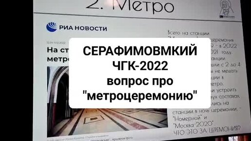 Серафимовский ЧГК-2022. Вопрос про церемонии в метро "Маяковская" (Москва).