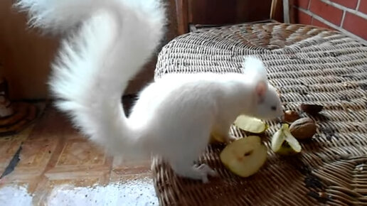 ♻️ Редкое видео 💥 | Неугомонная Белая белка 🐿️ ест яблоки 🍏 и таскает грецкие орехи 🍪