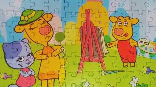 Бо рисует портрет Зо. Собираем детские пазлы с героями мультфильма Оранжевая корова