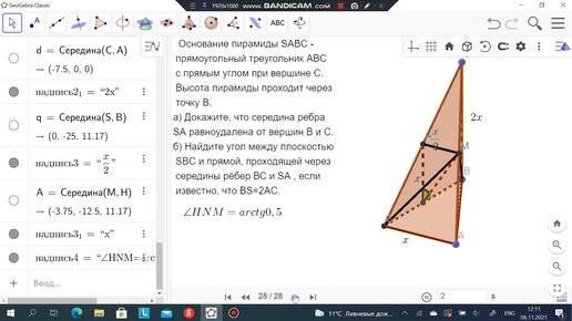 Ященко. ЕГЭ. Профильная математика. 18 вариант. 2023. 13 задание. GeoGebra.