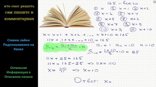 Математика Иван прочитал 165 страниц за 11 дней. Каждый день он читал на одну страницу больше, чем в предыдущий день. Сколько страниц он