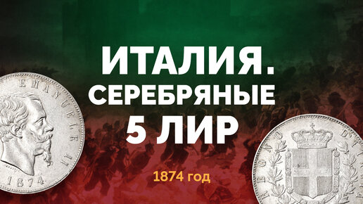 Серебряные 5 лир Итальянского Королевства 1874 г.