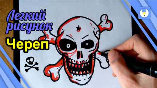 Как нарисовать простой череп шаг за шагом | Черный и красный маркер