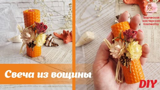 Свеча из вощины с декором из сухоцветов. Тестирую готовый набор из Леонардо.