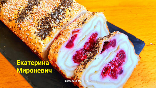 🍒🎄🍒Нежнейший рулет из лаваша с ванильным творожным суфле и вишнёвой кислинкой!Не отличить от выпечки из слоёного теста! Десерт к чаю!