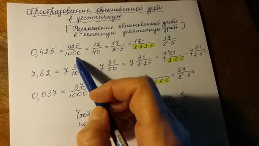Преобразование обыкновенной дроби в десятичную.