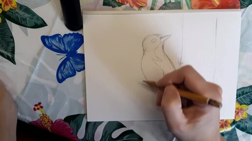 Как нарисовать дятла гуашью