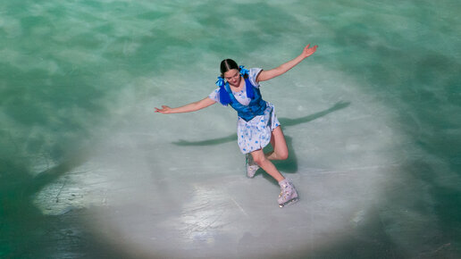 Евгения Медведева в Ледовом шоу «Волшебник страны Оз» Ильи Авербуха. Оз обычный человек, но великий обманщик.