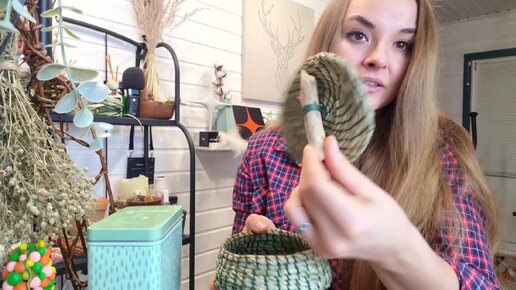 Корзинка из травы по старинной технологии спустя полгода. Как поменялся цвет и не рассыпались ли травинки