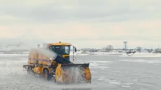 Международный аэропорт Миннеаполис уборка взлетно-посадочной полосы от снега после метели.
