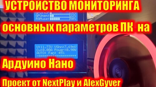 Устройство мониторинга основных параметров ПК на Ардуино Нано и 2х дисплеях 4002.