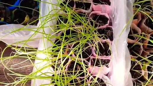 Перенесла рассаду лука на балкон.☘🌾__Салат из краснопёрки.🐟__Кот стащил мой топик.🤣