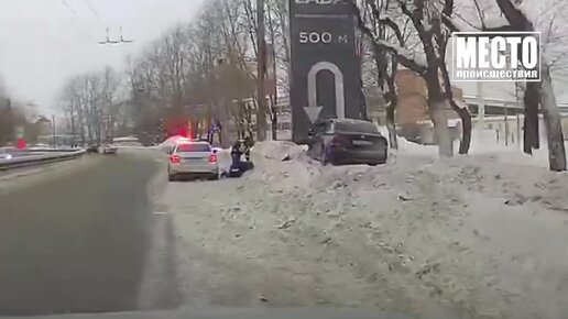 Против сугроба, баннера и полиции. ДТП на Производственной. Киров