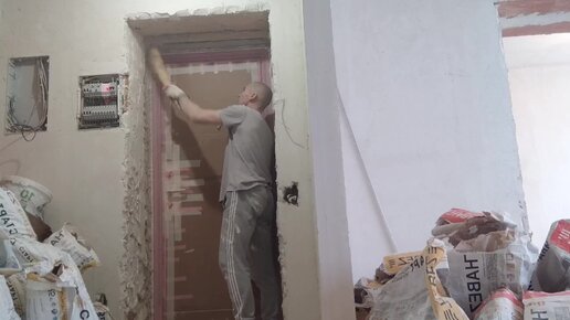 Блог.Штукатурка откоса входной двери,монтаж горизонтального откоса входной двери.