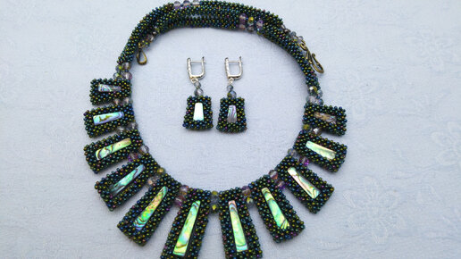 Колье из бусин абалона оплетенных бисером в технике квадратного жгута. Сбирам на ювелирный тросик.