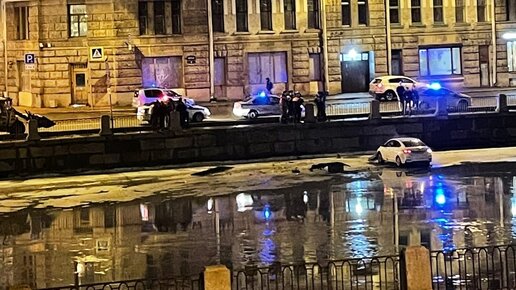 Мигрант на каршеринге, уходя от ГИБДД, пробил ограждение и вылетел на лёд Фонтанки. Момент попал на видео
