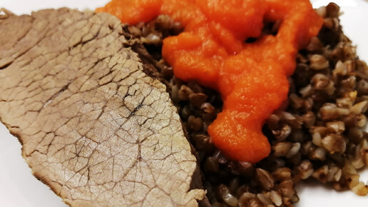 ОТВАРНАЯ ГОВЯДИНА с гречкой и морковным соусом