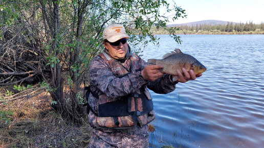 Проверяю сеть в протоке. Крупный карась в Якутии. Отличный улов.