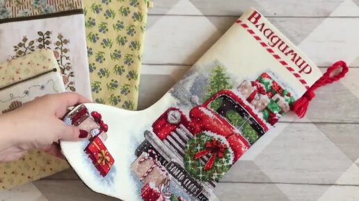 Как сшить рождественский носок, сапог просто. Оформляю вышивку. Лоскутное шитье.