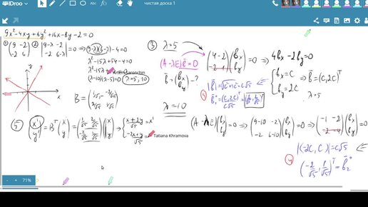 Пример преобразование уравнения эллипса: поворот и сдвиг.