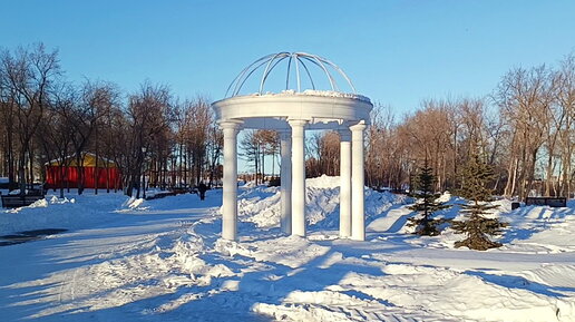 Магнитогорск, идём гулять по заснеженному парку у Вечного Огня, Правобережный район (16.01.2023)