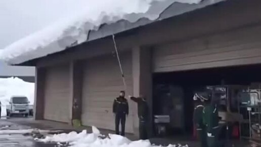 Эффектный способ убрать снег с крыши