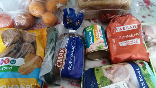 Покупки из магазина Магнит, покупок очень много,всего за 700 руб мясо, фрукты,овощи, печенье к чаю, пельмени,консервы и не только,акции