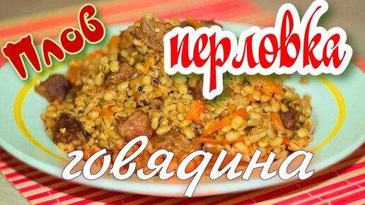 Вкусный плов из перловки с мясом.