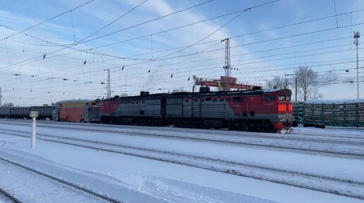 Далее: Три тепловоза в составе хозяйственного поезда включая зеленый 2ТЭ10М и синий ДМ62
