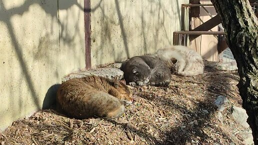 Породистые котики загорают в солнечный теплый день января