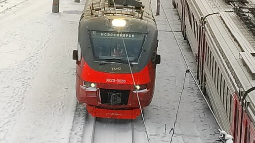 Электропоезд ЭП2Д-0088 прибывает на станцию Новосибирск-Главный