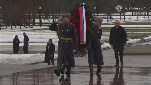 Владимир Путин принял участие в церемонии возложения венка к монументу "Мать-Родина" на Пискаревском мемориальном кладбище