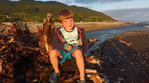 Гуляем вечером с детьми вдоль моря в Цандрипше.