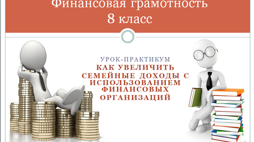 Обществознание. Финансовая грамотность 8 кл. Урок-практикум "Как увеличить семейные доходы с использованием финансовых организаций".