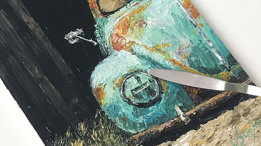 Как нарисовать старую машину. Картина маслом. Фольксваген жук.