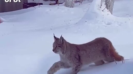 На Урале рысь нагло гуляет перед камерами в небольшом поселке...