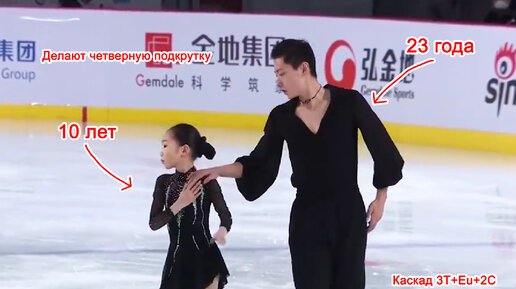 Необычный дуэт: китайская пара удивляет четверной подкруткой и... возрастом партнёрши.