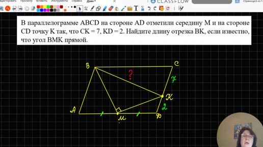 Интересная задача про треугольник в параллелограмме (матвертикаль 8 класс)