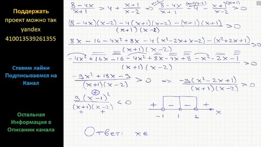Математика Решите неравенство (8-4x)/(x+1) > 4 + (x+1)/(x-2)