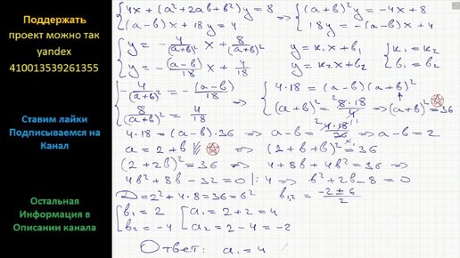 Математика При каких значениях параметров а и b система 4x +(a^2 +2ab +b^2)y=8 (a-b)x +18y=4 Имеет бесконечно много решений?