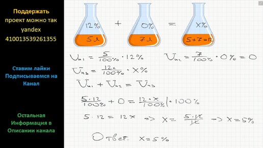 Математика В сосуд, содержащий 5 литров 12–процентного водного раствора некоторого вещества, добавили 7 литров воды. Сколько процентов