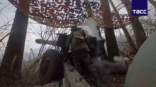 Кадры боевой работы расчетов 152-мм гаубиц Д-20 артиллерийских подразделений Западного военного округа