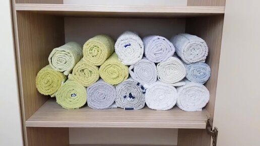 Научилась складывать полотенца на полках так, чтобы они не превращались в одну большую кучу и брались удобно. Покажу 3 разных вида хранения