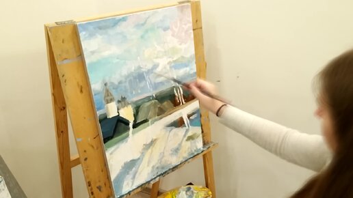 Грачи улетели - пародия на картину Саврасова - поэтапная картина маслом