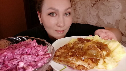 МУКБАНГ/СТЕЙК ИЗ🐷, ПЮРЕШКА, САЛАТ СВЕКОЛЬНЫЙ🔥