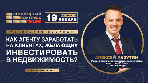 Вебинар «Как агенту заработать на клиентах, желающих инвестировать в недвижимость?»